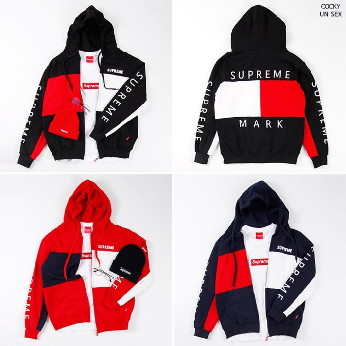 슈프림 톰배색 후드집업 M~XL 남녀공용 사이즈 (봄가을 특양면)